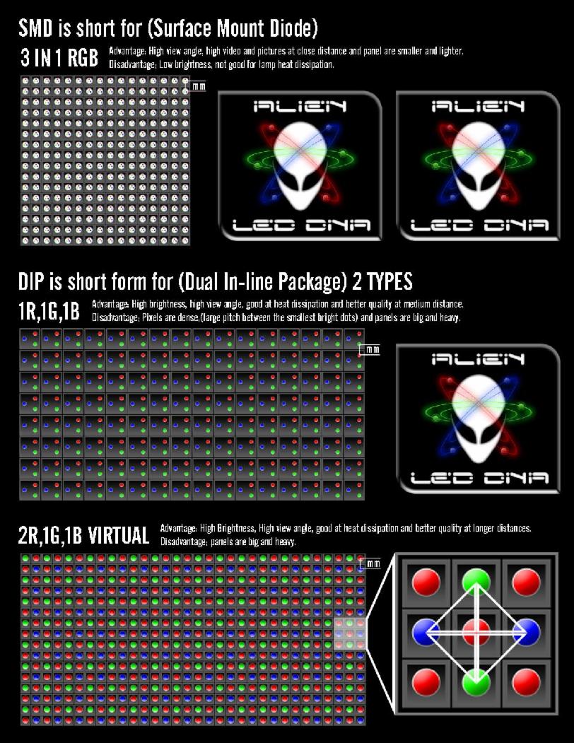 This chart demonstrates the advantages and benefits of Alien DIP (state of the art- high brightness) Virtual LED Walls! Don't settle for a lesser quality screen for your important event.